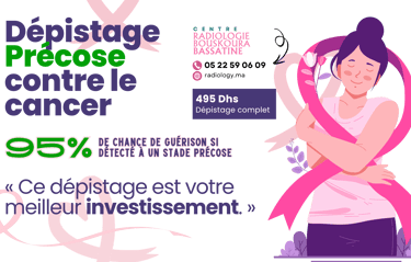 Découvrez des services de radiologie de premier ordre au Centre de Radiologie Bouskoura Bassatine ! Nous offrons une gamme complète d’examens, incluant l’IRM de pointe, le scanner multi-barre de dernière génération, la radiographie numérique avancée, l’échographie/Echo-Doppler de haute précision, la mammographie numérique, l’ostéodensitométrie fiable et l’imagerie panoramique dentaire détaillée.